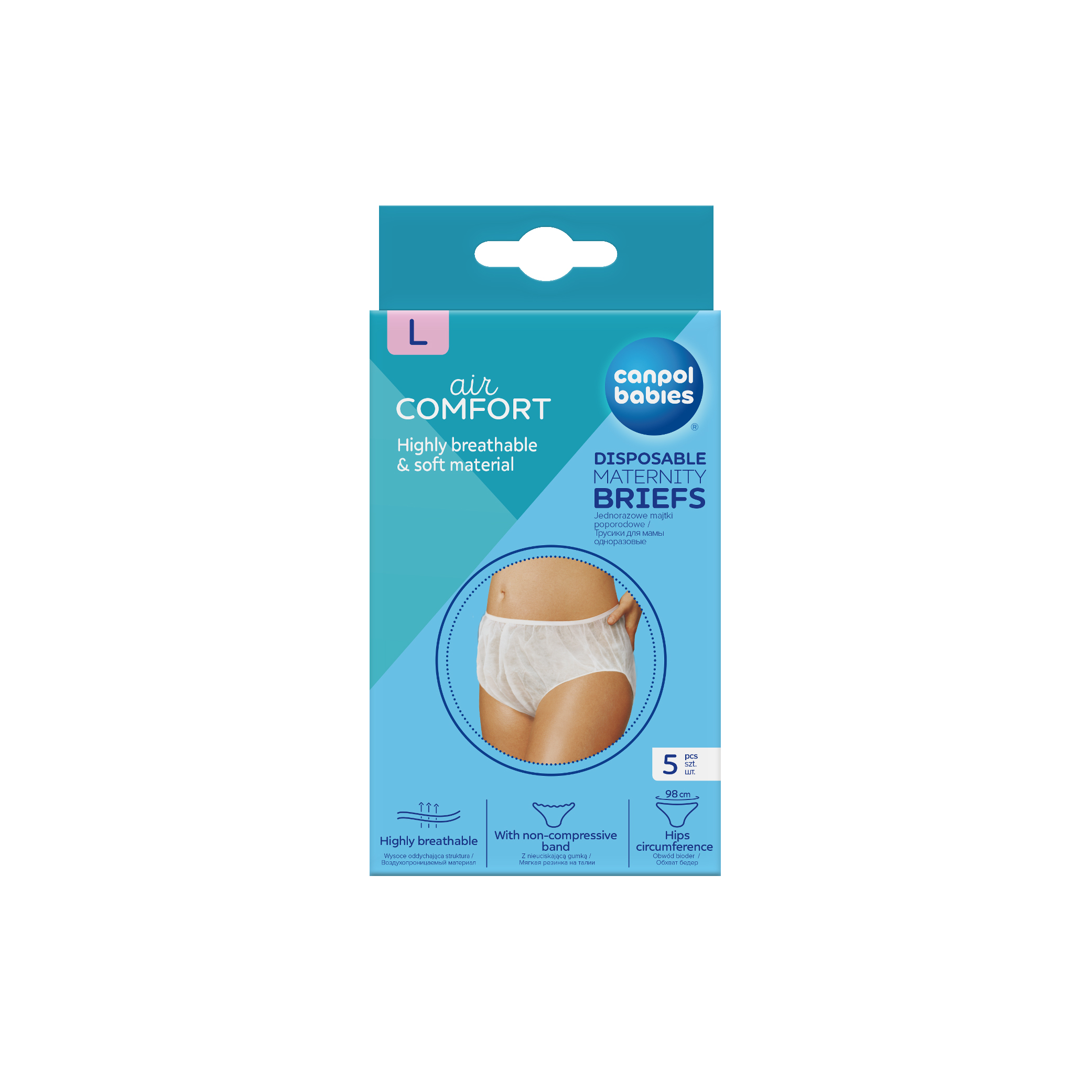 Disposable panties intended for women during the puerperium. They are made of soft, delicate for the skin fibers allowing free flow of air. Panties at the waist and groins are finished with a delicate non-compressive elastic band. They help to keep the postpartum pad in the right place.
