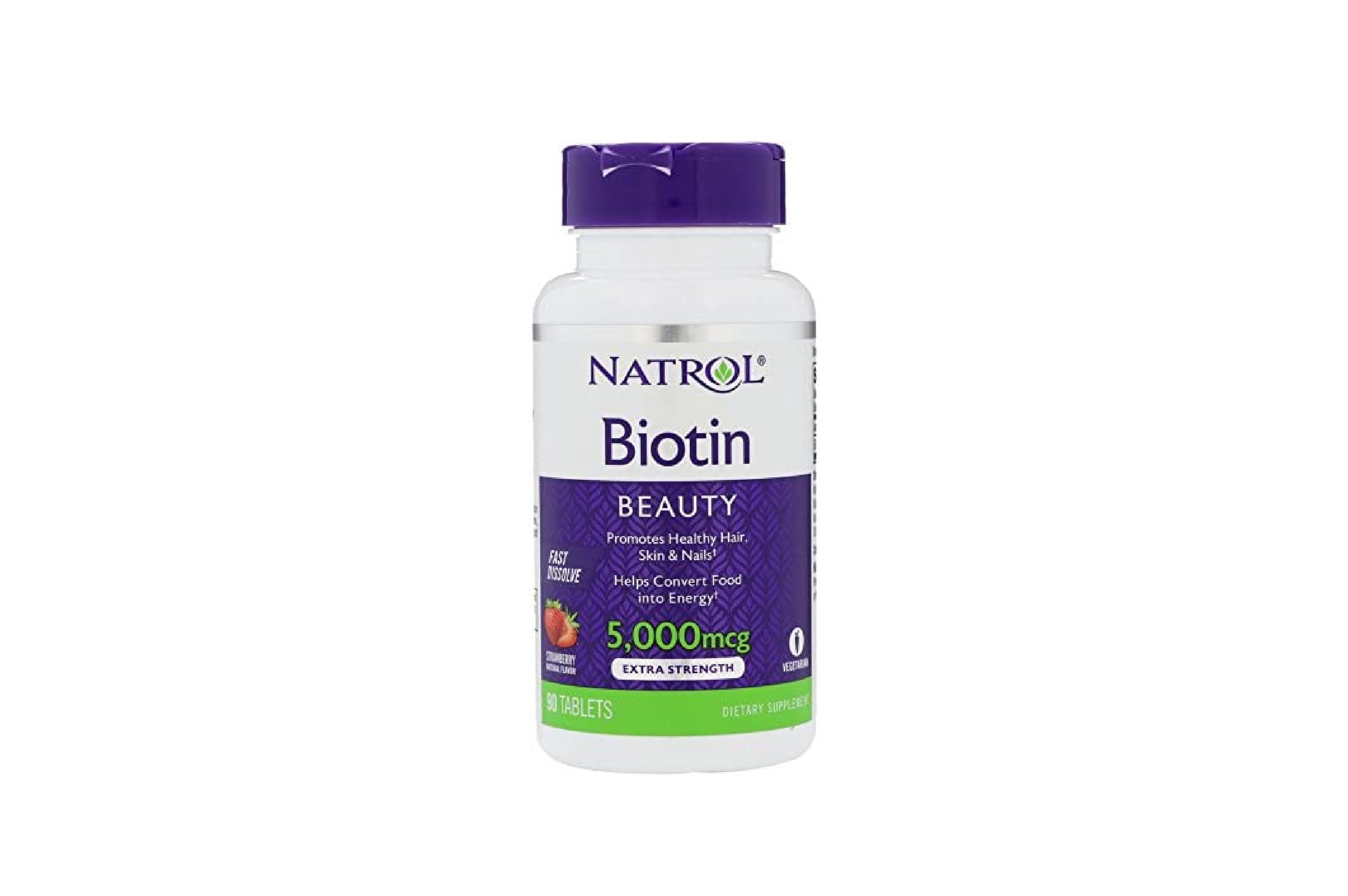 Biotin supports healthy hair, radiant skin and strong nails.Natrol’s unique fast dissolve form enables faster absorption and can be taken anytime, anywhere. No water needed.It helps support energy metabolism and aids in the conversion of food into energy.